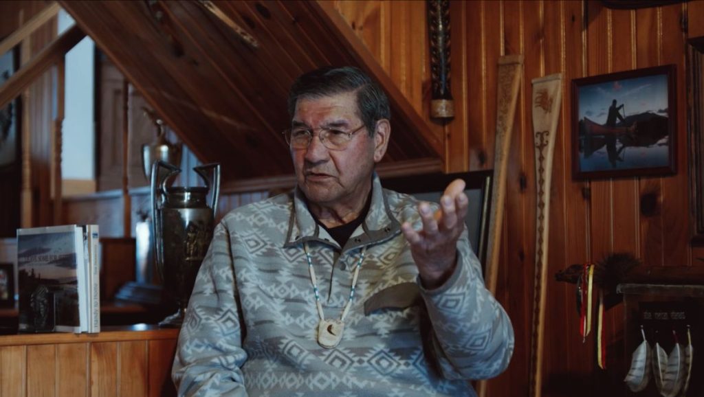 Penobscot Nation Elder and longtime river advocate Butch Phillips, speaks about the importance of salmon to his tribe. Still by Nolan Altvater/Sunlight Media Collective.